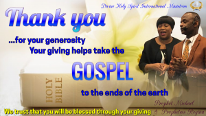 Acceptance of any contribution, gift or grant is at the discretion of Divine Holy Spirit International Ministries. Divine Holy Spirit International Ministries will not accept any gift unless it can be used or expended consistently with the purpose and mission of Divine Holy Spirit International Ministries.